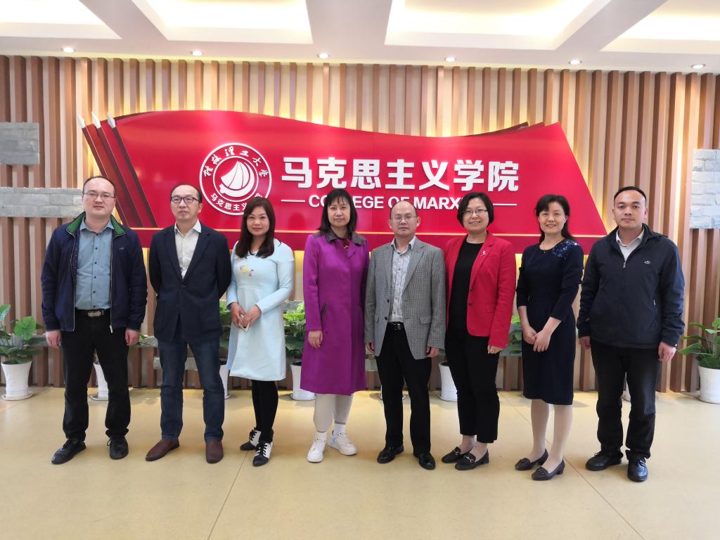 交流会上,梁英院长向来客介绍了我校和马院的基本情况。其中,梁院长重点介绍了我院学科建设发展历程、机构设置、师资队伍、师资培训、教学工作及成果、科研情况、社会服务等情况。