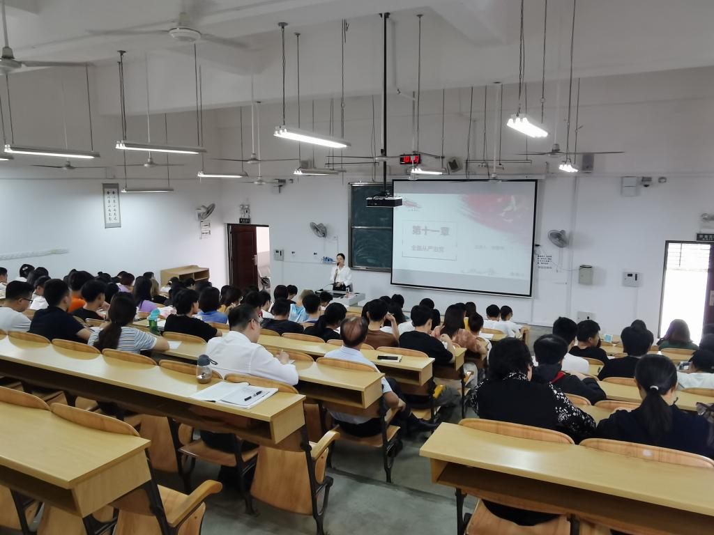 此次公开课,李春艳老师以“全面从严治党”为主题,采用教师引导、学生探讨的方式,从“新时代加强全面从严治党的原因分析”“新时代党的建设的总要求”“全面从严治党永远在路上”等三个方面展开讲授。讲课过程中,李老师注重引导和总结,学生积极参与、踊跃发言,师生之间互动良好有序。