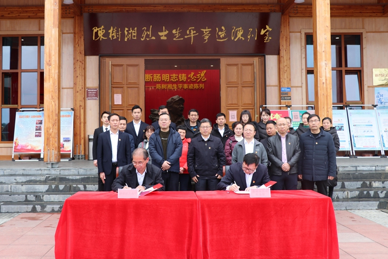 学院党委书记王青山与陈树湘烈士纪念馆馆长何小白代表双方单位签署基地培养协议