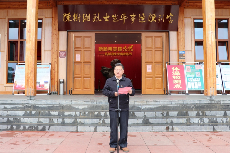 张一波在致辞中代表道县县委、县政府对我校领导和师生代表的到来表示热烈欢迎!他表示桂林理工大学选择与陈树湘纪念馆共建思想政治理论课实践教学基地,是对纪念馆的肯定和鼓舞。陈树湘烈士纪念馆作为省级爱国主义教育基地和党性教育基地,其丰富而有内涵的红色资源一定能为桂林理工大学的师生们提供一个“学党史、知党情、跟党走”的好去处,为学校加强思想政治教育、立德树人提供一个好平台。
