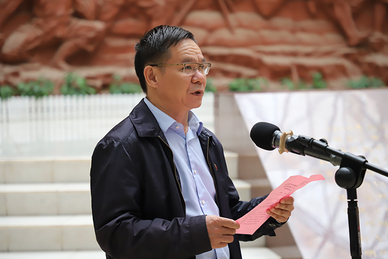 梁福沛在致辞中向基地的正式挂牌表示热烈祝贺,对关心、支持和参与实践教学基地建设的崇左市委宣传部副部长黄智庭及相关工作人员表示衷心感谢。他指出,实践教学基地的落成,是认真贯彻落实党中央号召,深入开展党史学习教育的具体体现,也是大力推进思想政治教育质量提升工程,促进课程育人、实践育人、文化育人建设的重要成果,标志着我校与地方“共建”“共育”“共享”的思政平台建设水平又登上一个崭新的台阶,思想政治理论课实践教学又迈出了坚实的一步。他强调,学校思政工作者要充分利用实践基地,完善教学方法,丰富教学内容,组织引领广大青年学生在基地开展实践学习,把老一辈无产阶级革命家在龙州起义的奋斗精神、奉献精神和红色基因不断传承下去,为中华民族伟大复兴积蓄磅礴力量。梁福沛希望双方以此为契机,把实践教学基地打造成桂林理工大学与崇左市的“连心桥”,在人才培养、科技创新、产学研结合、社会实践等方面加强合作交流,从而实现良性互动与合作共赢,在全面建成小康社会的道路上并肩同行,共创佳绩。
