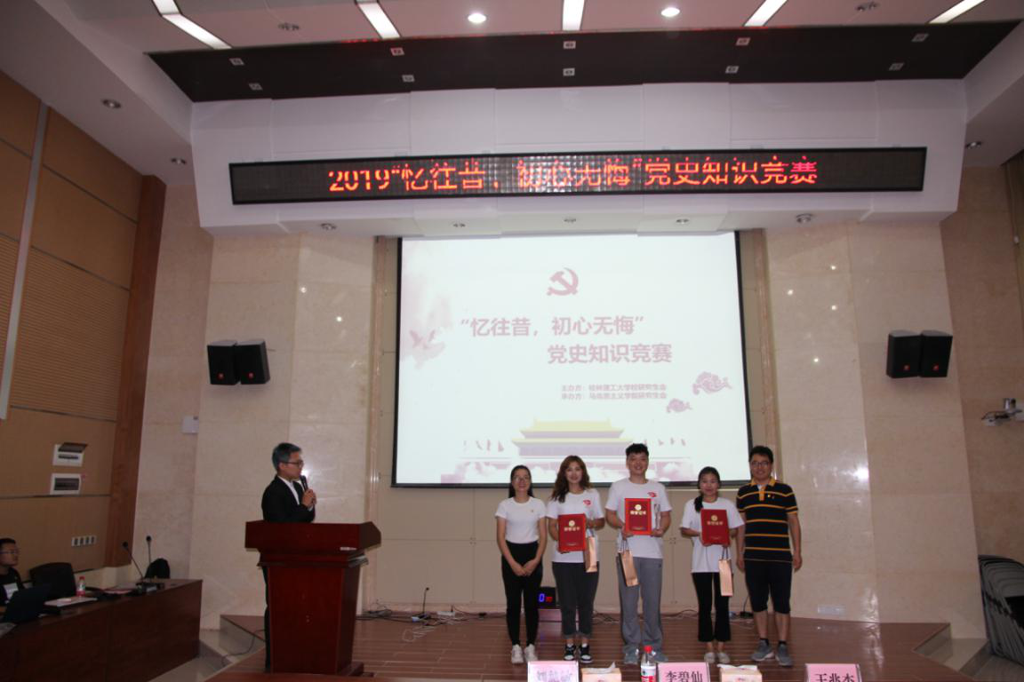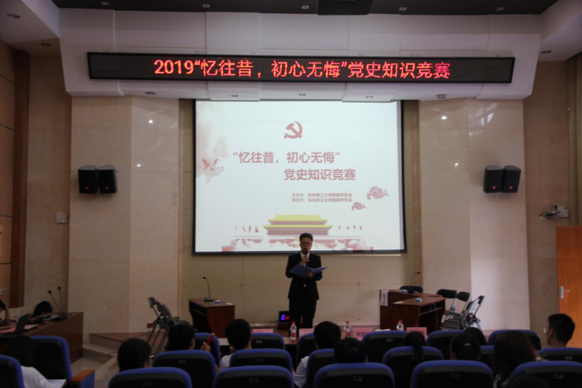 为庆祝新中国成立70周年,深入开展党史、新中国史的学习教育,增加学生对党史、新中国史知识的了解,坚定理想信念,增强守初心、担使命的思想自觉和行动自觉,2019年9月27日下午3点,学院面向全校研究生在萃华楼报告厅开展了“忆往昔,初心无悔”党史知识竞赛活动。