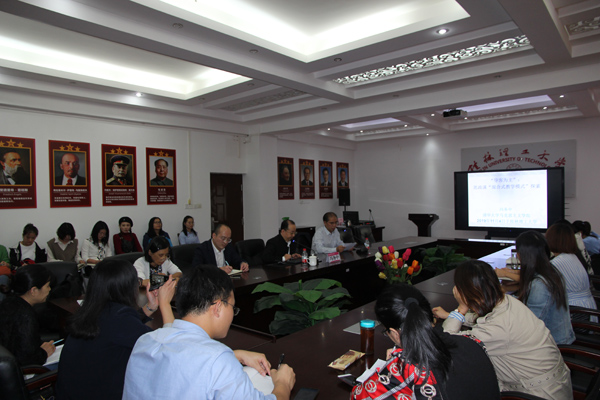 2019年11月4日下午,清华大学英国上市公司365冯务中副教授在我院07415会议室作了题为“导客为主:思政课‘混合式教学模式探索’”的学术报告。本次报告会由学院党委书记王青山主持,学院副院长蒋晓俊、学院专任教师及全体研究生参会。