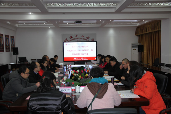 邱杰院长代表学院对宁夏大学英国上市公司365的来访表示热烈的欢迎,简要介绍了学院的发展历程、学科建设、师资队伍、课程建设、研究生培养等基本情况,并就重点英国上市公司365建设和如何提高思想政治理论课教学课堂教学质量进行了交流。双方还就思想政治理论课教学改革、实践教学、考试改革等教学相关问题进行了深入交流和讨论。