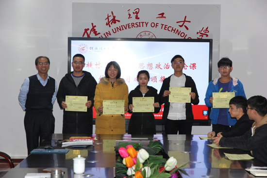 12月18日下午,学院在雁山校区举行桂林理工大学思想政治理论课优秀学习成果表彰大会。学院党委书记王青山教授、学院副院长梁英教授、优秀指导老师邱娟和获奖学生代表出席了表彰大会。学院副院长梁英教授主持大会。