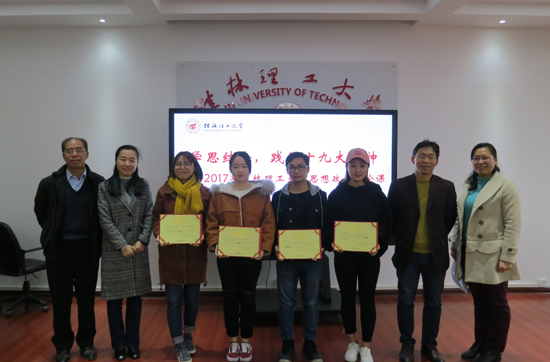 12月12日下午,学院在雁山07415会议室举行“学思结合,践行十九大精神” 2017年桂林理工大学思想政治理论课优秀学习成果颁奖仪式,学院副院长梁英教授主持颁奖仪式。