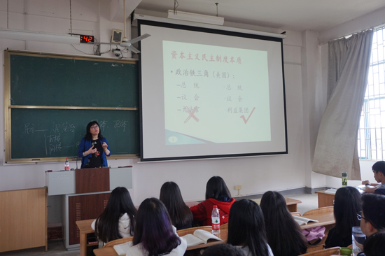 郭凤志教授讲授了《马克思主义基本原理概论》“资本主义的民主制度及其本质”部分。郭教授旁征博引,案例丰富,联系现实、生活,又结合了自己的见闻、经历,从资本主义民主制度的构建原则、美国民主制度存在的社会条件、如何认识和评价资本主义民主制度三个大方面深入讲解了资本主义民主制度。郭教授扎实的教学功底、丰富的教学经验、高超的教学艺术为师生们讲出了一堂高质量、高水平的示范公开课。