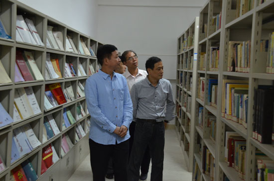 随后,唐华常务副部长实地察看了学院资料图书室,并对学院的发展提出了一些指导性意见。