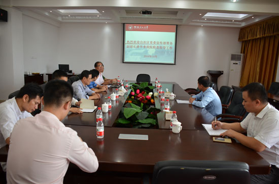 唐华常务副部长在雁山07415会议室听取了学院王青山书记关于学院现状及建设目标的汇报,就学院依托广西少数民族地区特点、与学校优势学科的协同发展、突出思想政治教育的思想引领作用的学科特色进行深入了解,还饶有兴趣地听取了学院建设桂林红色资源展览馆的汇报。