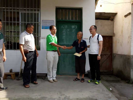随后,实践团成员走访慰问了灌阳镇大源村的几位贫困老党员,王青山书记关切地询问老党员们的身体状况,并将学院老师们交纳的特殊党费作为慰问金交与他们手,鼓励他们要保持积极乐观的心态,树立信心,在党和政府的帮助下,积极战胜困难,享受改革发展的成果。