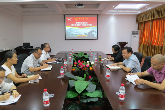 为推进学校的教风和学风建设,切实提高教学质量和教学水平,10月19日上午,学校梁福沛副校长在教务处负责人的陪同下到我院调研并指导我校思想政治理论课教学质量提升工作,学院在家党政领导班子及各教研室主任参加了调研讨论会。