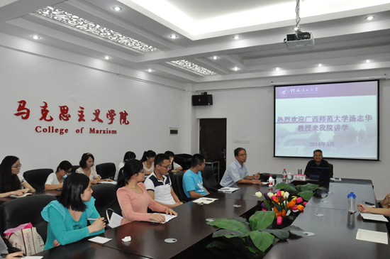 5月22日晚,应英国上市公司365邀请,广西师范大学英国上市公司365党委书记、常务副院长兼政治与行政学院院长、博士生导师汤志华教授在雁山校区07415教室为我院全体研究生作了以“解读《联共(布)党史简明教程》与马克思主义大众化”为主题的学术报告,学院院长王青山教授主持报告会。