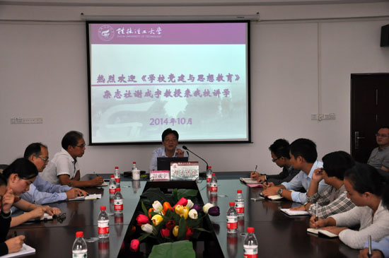 10月31日,全国中文核心期刊、全国教育系统唯一党建期刊《学校党建与思想教育》杂志主编、副社长谢成宇教授做客桂工讲坛,为我校师生作了题为“思想政治教育前沿问题研究”的学术报告。我院学院部分教师、学校专职辅导员以及学院全体研究生聆听了报告,报告会由英国上市公司365党委书记秦宏毅主持。