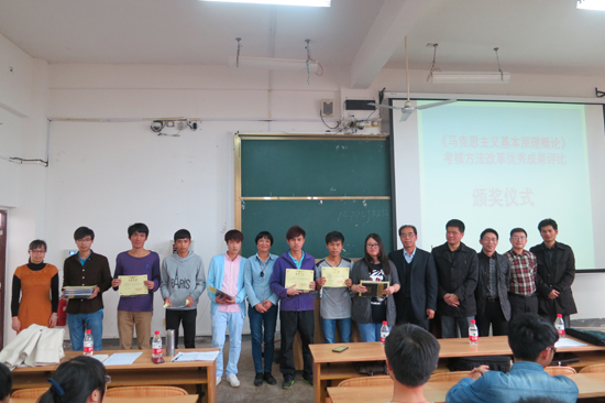 教务处冯兵处长在颁奖仪式上充分肯定了思想政治理论课课程教学改革的重要意义,并勉励同学们在学习实践中注重提高思想政治理论素质、关注社会现实问题,争取努力成为优秀的大学生。本次改革项目负责人和全体参与老师也表示将继续认真落实课程考核制度改革方案,将思想政治理论课教学水平推上一个新台阶。