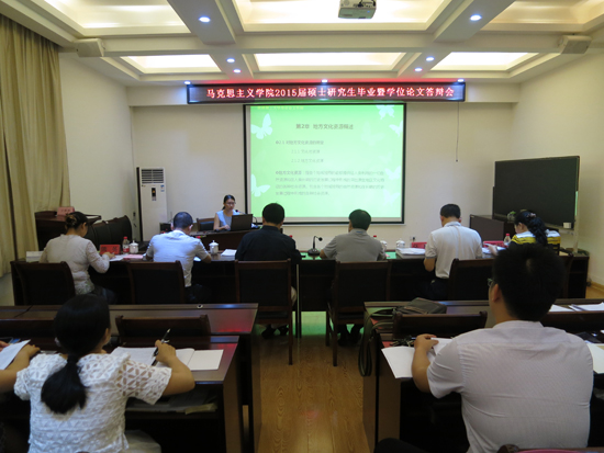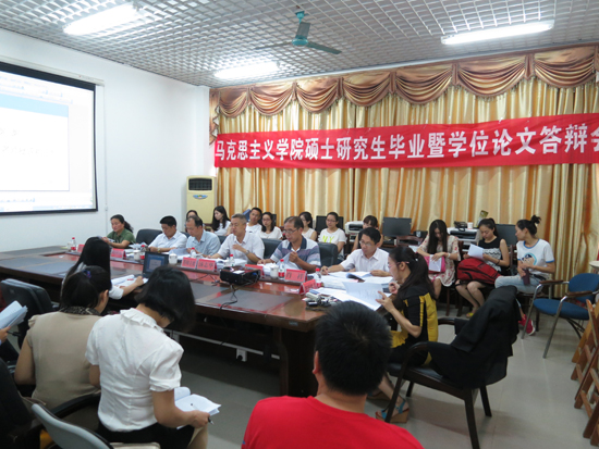 5月31日,学院2015届硕士研究生学位论文答辩会顺利举行。思想政治教育和马克思主义基本原理两个专业共24位毕业生参加了答辩。答辩会邀请了自治区地质矿产勘查开发局党组书记唐善茂教授和广西师范大学博士生导师汤志华教授分别担任答辩委员会主席,学院研究生导师、2015届硕士研究生参加了此次答辩会。