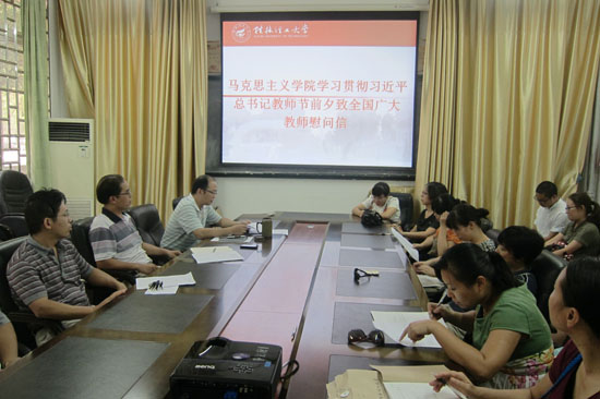 9月16日上午,学院在1113会议室组织全院教职工学习贯彻习近平总书记教师节前夕致全国广大教师慰问信,畅谈学习体会。学院党委书记秦宏毅主持会议。