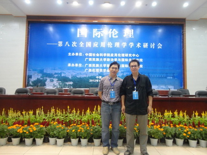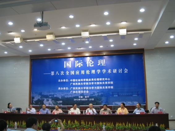 2012年10月20日-21日,第八次全国应用伦理学研讨会在广西南宁广西民族大学举行。我院副院长肖祥教授和张洪春博士参加了本次学术研讨会,两位老师不仅向大会提交了学术论文,而且分别在分组研讨交流会上发言。本次全国应用伦理学研讨会以“国际伦理”为研讨主题,内容涉及国际伦理的内涵及其发展、国际伦理与人权伦理、文化冲突与普世伦理、社群主义与全球正义、人道主义干预的伦理问题、国际伦理视野中的民族问题、全球不平等与国际经济正义、全球正义与全球健康伦理、全球环境正义与国际气候伦理等方面。参加学术会议和研讨学习是有效拓展我院教师的学术视野、有效提升学术研究能力的重要途径。