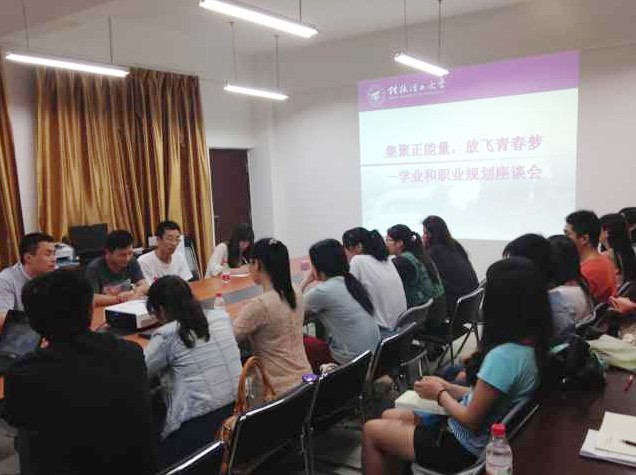 5月9日下午,学院在雁山校区07407教室举行了“传递正能量,放飞青春梦——学业与职业规划”座谈会。学院邀请了2012届优秀毕业生谷正杰、2013届优秀毕业生张红勇和华向理与研究生座谈,学院辅导员焦艳主持座谈会。