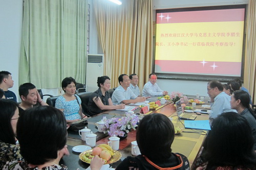 王青山书记对江汉大学英国上市公司365李腊生院长一行的到来表示热烈欢迎,并就学科建设、课程建设等方面的内容向客人进行了介绍,李腊生院长也就江汉大学英国上市公司365的发展情况向我院教师进行了交流。双方就学科建设、队伍培养、社会实践教学等多方面的问题进行了交流并表示希望今后将进一步加强沟通和交流,促进高校思想政治理论课教学和马克思主义理论学科建设的进一步发展。