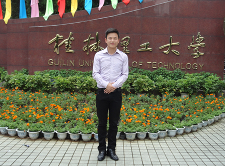 采访临近结束,他说,在桂工学习生活的绚丽和多彩是一生的时间所不能更改和忘怀的,驻足回眸三年的求学之路,曾经年少轻狂,一直意气风发,心中已是百感交集,感慨万千。他说他特别要感谢的是他的导师赵君教授,导师在做人、做事、做学问方面都给了他很大的影响。他觉得大学生活过的很充实,在桂工收获也很多,很喜欢这样的生活。他觉得只要无愧自己曾经生活学习过的校园,无愧于他的各位老师,无愧于自己就够了,就像他的座右铭一样“靠实力说话、向目标迈进”。