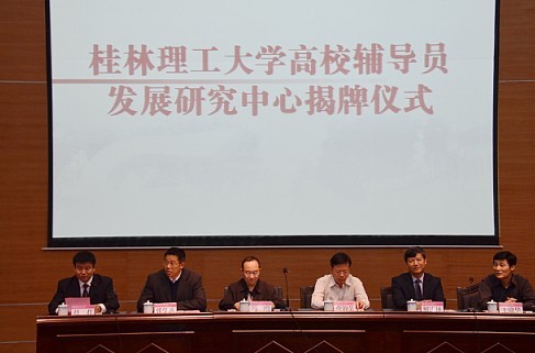 4月16日上午,我校在图书馆报告厅举行桂林理工大学高校辅导员发展研究中心揭牌仪式。教育部思政司司长冯刚,自治区高校工委副书记莫锦荣,我校党委书记张学洪,校长解庆林等领导为新成立的桂林理工大学高校辅导员发展研究中心揭牌。学校党委副书记、纪委书记赵君主持揭牌仪式。