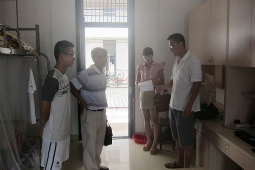 9月12日中午,我院迎新工作顺利完成,24名研究生新生全部报到注册。当天,学院党委书记、常务副院长王青山教授在学院行政秘书和学院研究生辅导员的陪同下,深入宿舍看望慰问了学院2012级研究生新生,并进行亲切的问候,送去学院的温暖。王书记希望大家尽快适应研究生阶段的学习生活,在今后的三年中努力学习,提高科研创新能力,积极参加各项学术活动和文体活动,展现当代研究生的风采。