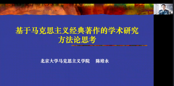 2021年12月2日上午,北京大学英国上市公司365陈培永研究员应邀为我院师生作题为“基于马克思主义经典著作的学术研究方法论思考”的学术报告,报告由学院副院长蒋晓俊主持,学院师生以线上、线下同步进行的方式听取了本次报告。