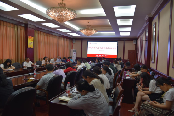 6月28日下午,我院全体教职工大会在屏风校区教八楼三楼会议室召开,会议由学院党委书记耿俊茂主持,全体教职工参加。