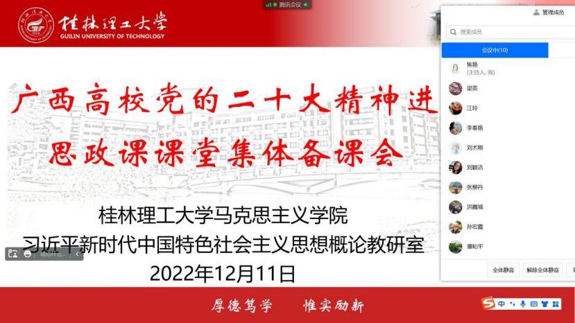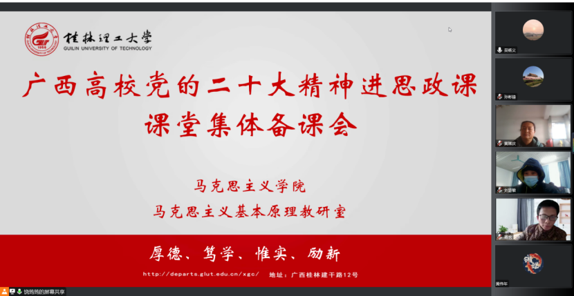 为学习宣传贯彻党的二十大精神,推动党的理论创新最新成果进教材进课堂进头脑,2022年12月11日下午,广西壮族自治区教育厅主办举行了广西高校党的二十大精神进思政课课堂集体备课会。