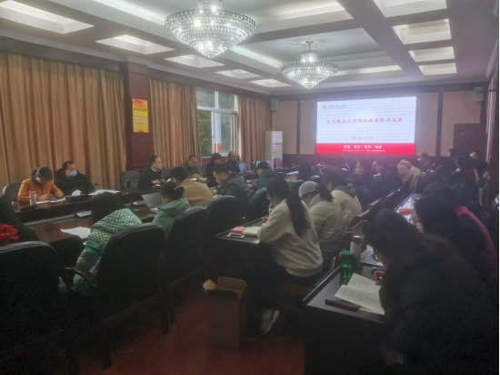2月17日上午,我院在屏风校区教八楼三楼会议室召开全体教职工大会,全面部署安排新学期的重点工作,会议由院党委书记耿俊茂主持,学院全体教职工参加。