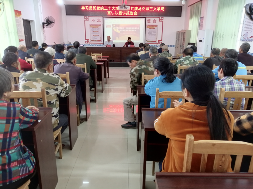 我院王青山教授应邀在崇左市扶绥县渠黎镇渠新村学习室开展党的二十大精神宣讲报告,有关领导和渠黎镇干部职工、渠新村驻村工作队、村“两委”成员、党员等聆听了宣讲。王青山教授围绕党的二十大主题、全面建设社会主义现代化国家的目标任务以及理论创新等方面结合亲身经历、身边典型和个人体会,用生动的语言、形象的描述、深入的思考,对党的二十大精神进行深入浅出地讲解。宣讲阐述透彻、鼓舞人心,富有思想性、理论性和指导性,进一步加深了党员干部对党的二十大精神的认识、理解和把握。扶绥县融媒体中心深度报道,大家纷纷表示要把学习贯彻党的二十大精神与本职工作相结合,不断强化理论武装、问题导向、活动引领,积极为民谋福祉,全面提升群众的获得感、幸福感。