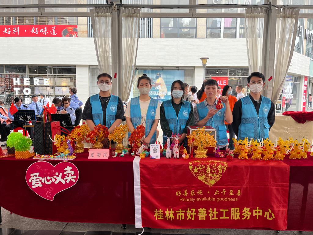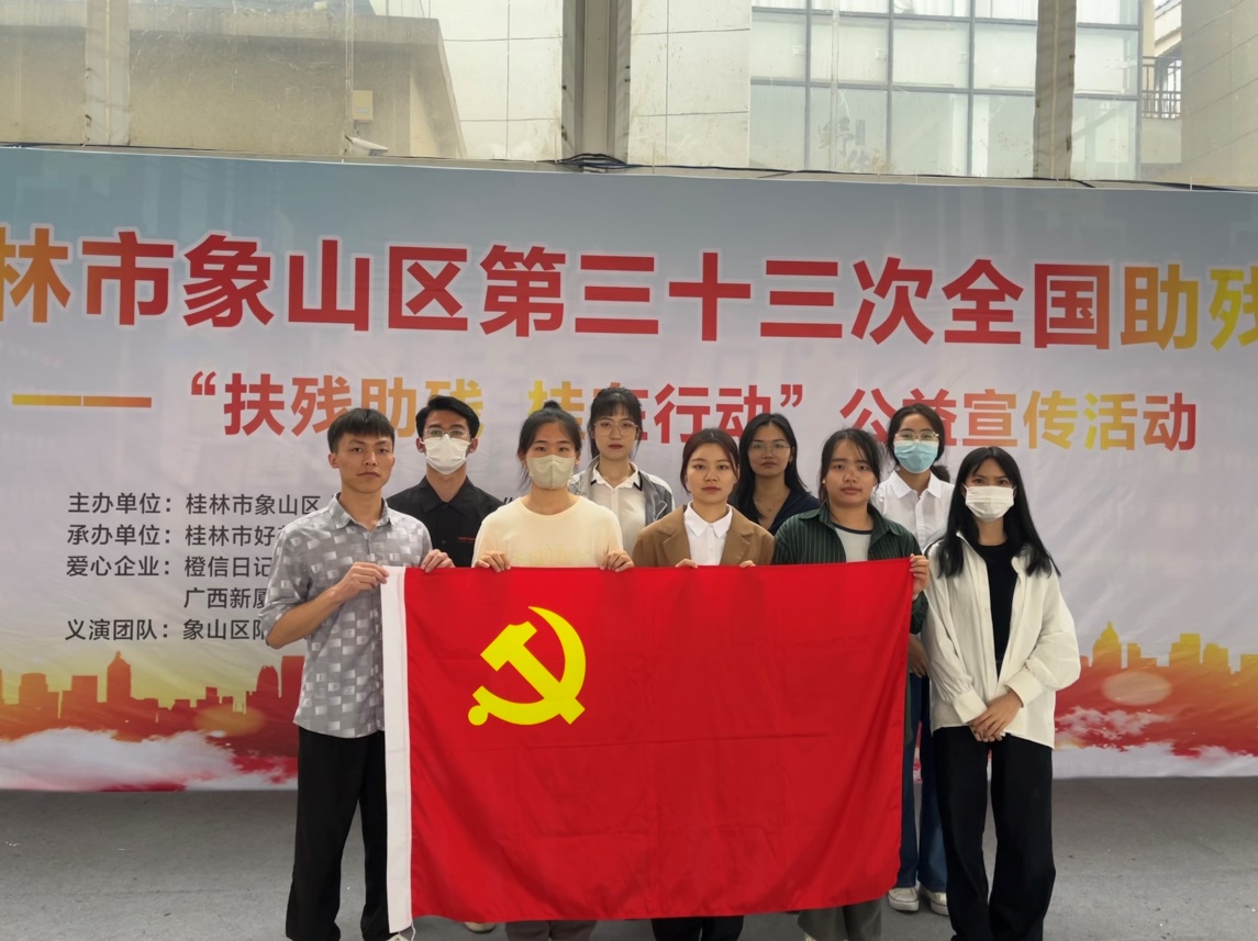 为全面贯彻党的二十大精神,培育社会主义核心价值观,弘扬奉献、友爱、互助、进步的志愿精神,增强我院研究生党支部对全国助残日相关知识的了解,在第三十三次“全国助残日”即将到来之际,我院研究生党支部于5月14日积极参与由桂林市象山区人民政府残疾人工作委员会主办的象山区第三十三次全国助残日——“爱心助残 感恩母亲”公益宣传活动。在活动中,我院党支部成员作为志愿者积极参与活动现场布置,帮助义卖象山区阳光家园残障学员的手工作品,热心与他们进行沟通交流,鼓励他们要自信、自强、自立,以积极乐观的生活态度面对困难。随后在节目展演环节中,党支部成员与我校研究生焱飞志愿服务队共同合唱《我和我的祖国》,表达了坚信在党的坚强领导下,残疾人的生活和梦想必将更加灿烂的美好祝愿。