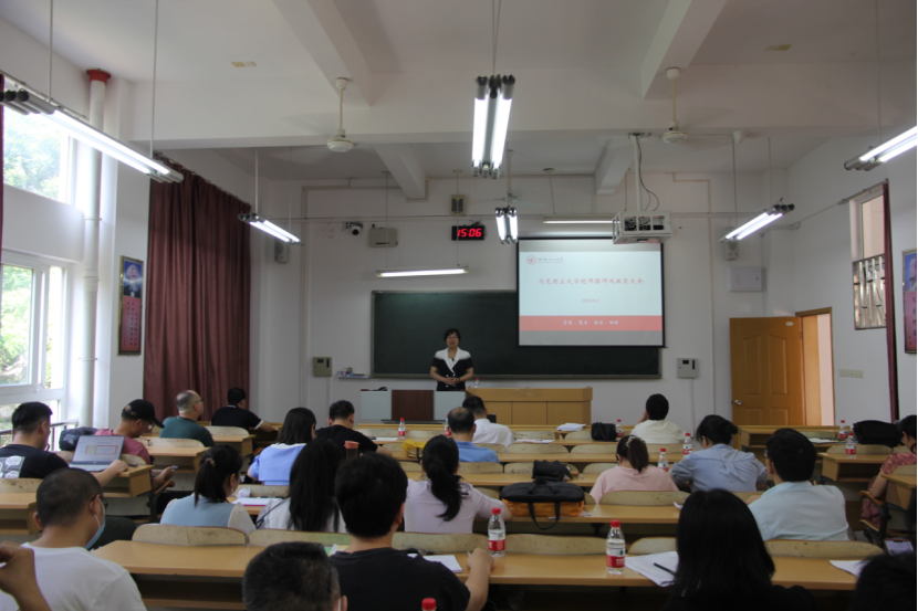 会上,院长梁英传达了教育部第五次全国高校思政课建设工作调度会议精神和新形势下加强师德师风建设工作座谈会精神,通报了暑期社会实践活动准备情况,并对本科教育教学审核评估、期末考试等重点工作进行了部署和安排。副院长蒋晓俊对本科教育教学审核评估、思政课集群结队活动、思政课建设问卷调查等教学工作作了汇报。最后,党委书记耿俊茂就理论学习、党群建设等方面作了汇报和要求。