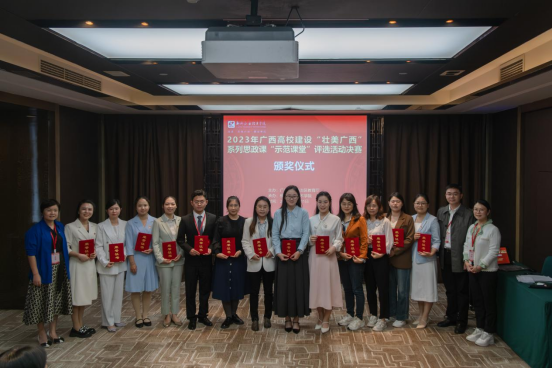为扎实推进习近平新时代中国特色社会主义思想和党的二十大精神进教材、进课堂、进学生头脑,由自治区教育厅主办的全区高校建设“壮美广西”系列思政课“示范课堂”决赛于11月11日在柳州职业技术学院举行,经过紧张激烈的角逐,现场决赛本科组共评选出一等奖6名、二等奖14名,我院教师姚慧展示的示范课堂《心怀“国之大者”,贯彻群众路线》、丁元展示的师范课堂《以保障和改善民生为重点加强社会建设》均获二等奖。