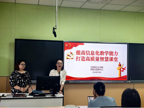 为提高教师雨课堂平台的使用与管理能力,学院邀请网络与信息中心教育技术科科长、桂林理工大学与学堂在线智慧教学实践共建基地负责人陶雁羽老师于10月18日下午3点在屏风校区9203智慧教室举办“提高信息化教学能力,打造高质量智慧课堂”培训,活动由院长助理刘颖洁老师主持,马院专兼职教师参加培训。