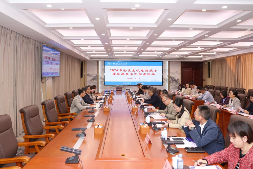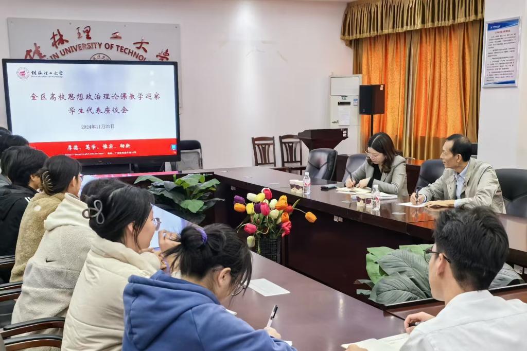 11月21日下午,以桂林旅游学院校长林春逸教授为组长的全区高校思想政治理论课教学巡察专家组到校开展思政课教学巡察。学校党委副书记、校长王敦球,党委常委、副校长王磊,党委常委、副校长、组织部部长唐壮东,党委常委、宣传部部长叶昊、统战部部长邱杰出席思想政治理论课教学建设情况汇报会和教学巡察反馈会,学校党委副书记吴志强主持会议。学校党办校办法务办、学工部(处)、研工部、本科生院、科学技术研究院、人事处、研究生院、财务处、英国上市公司365等相关职能部门和学院负责人,英国上市公司365部分师生代表参加相关会议。