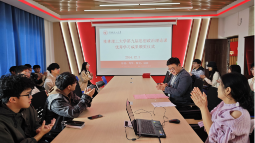 2024年12月3日上午,我院在雁山07401举行桂林理工大学第九届思想政治理论课优秀学习成果颁奖仪式,本次颁奖仪式由学院党委副书记马彬彬主持。