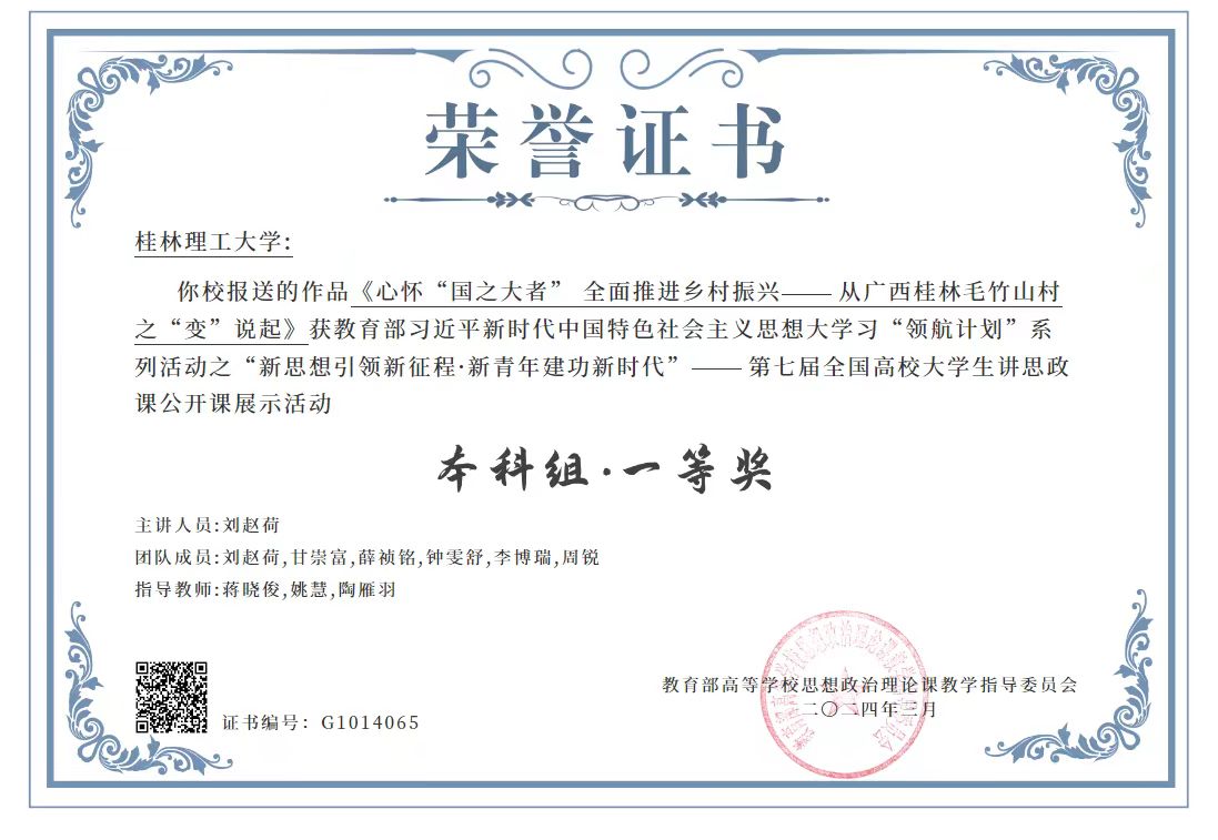 加强有组织科研,营造浓厚的科研氛围。获得2024年国家社科基金高校思想政治理论课研究专项2项,实现了我校在国家社科思政课专项申报的重大突破。获得教育部人文社会科学研究项目1项,广西哲学社会科学项目4项。在今年“中国软科”发布的排名中,我校马克思主义理论学科进入全国前50%,排名160位。深入开展专兼职思政课教师共同体建设计划,学校出台并实施《桂林理工大学思想政治理论课教师专项岗位奖励绩效发放管理办法(试行)》,激发专兼职思政课教师活力,打造专职为主、专兼结合、数量充足、素质优良的思政课教师队伍。