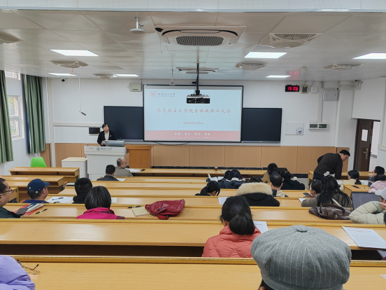 会议投票选举出了26名第一届教代会代表,听取并审议了院长蒋晓俊同志所作的学院工作报告,充分肯定和高度评价了过去一年学院的工作和所取得的成绩,并对今后的工作进行了布置。最后,梁英同志讲话,她号召全院教职员工要紧密地团结在以习近平同志为核心的党中央周围,高举中国特色社会主义伟大旗帜,坚持以习近平新时代中国特色社会主义思想为指导,全面贯彻落实党的二十届三中全会精神,深入学习习近平总书记对学校思政课建设作出的重要指示,全面贯彻党的教育方针,全面落实立德树人根本任务,以思政课内涵式建设为中心,不断提高思政课的教学质量和育人效果。在今后的学院的工作中,以党建工作为引领,学科建设为龙头,以人才队伍建设为保障,加强顶层谋划、团结协作、精耕细作,奋力推进学院各项事业的高质量发展。
