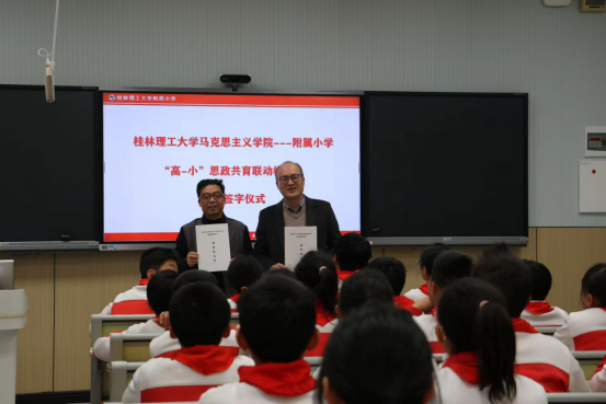 活动最后,桂林理工大学英国上市公司365与附属小学签署了“高-小”思政共育联动机制协议,正式建立了课程思政一体化协作机制。此举将进一步推动大学与小学在课程开发、资源共享、教师培养等方面的深度合作,形成思政育人合力,共同培养担当民族复兴大任的时代新人。