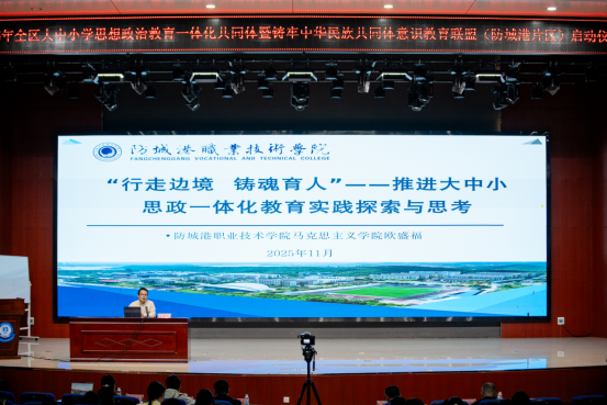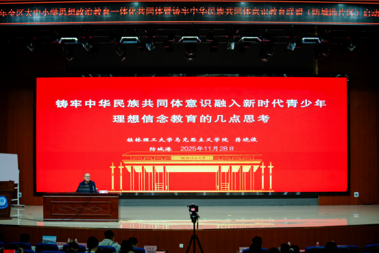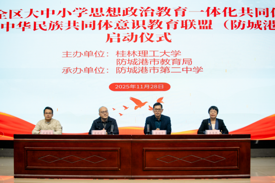 11月28日,全区大中小学思想政治教育一体化共同体暨铸牢中华民族共同体意识教育联盟(防城港片区)正式启动。桂林理工大学英国上市公司365院长蒋晓俊、广西民族大学民族学与社会学学院民族学系主任胡美术、百色学院马克思主义学院黄修卓副教授、防城港市教育局副局长张培中、桂林理工大学统战部朱强,以及来自30所联盟单位的领导、思政课教师代表、德育工作负责人与业务骨干等100余人出席活动。