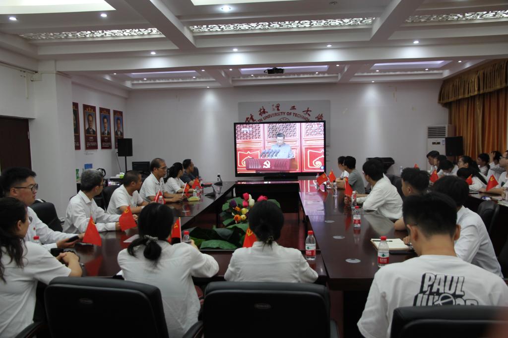 庆祝中国共产党成立100周年大会于今天上午8时在北京天安门广场隆重举行。中共中央总书记、国家主席、中央军委主席习近平发表重要讲话。我院领导班子、师生在雁山校区07415会议室收听收看了庆祝中国共产党成立100周年大会的盛况。