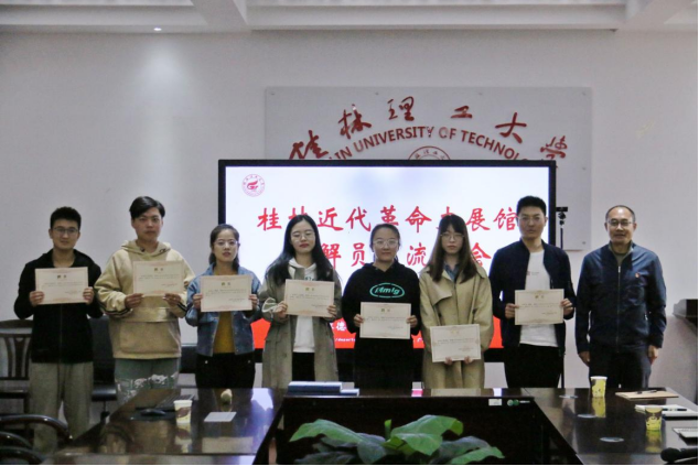 最后,耿俊茂书记为20级讲解员发放了聘书,他指出桂林近代革命史展馆作为我校和我院标志性品牌,从建立到发展至今不足三年,讲解员们有责任也有义务将其发展壮大,如果说是第一代讲解员给予了展馆框架,第二代讲解员丰富了展馆内容,那么当下第三代讲解员最关键的任务就是要进一步提升展馆的讲解和服务水平。他由衷地感谢20级讲解员对展馆作出的贡献,对新讲解员寄予了众望,并号召大家为建设我市、我校具代表性的展馆而不懈奋斗!