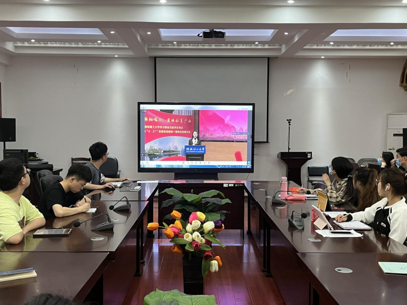 为学习习近平总书记视察广西重要讲话精神,全面贯彻新发展理念,建设新时代中国特色社会主义壮美广西,4月22日,我院在雁山校区07407、07415会议室集中观看了我校学习领会习近平总书记视察广西4.27重要讲话精神一周年纪念研讨会直播,学院全体研究生参加了学习。