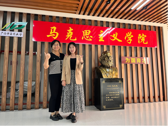 (图为梁英书记与2018级学生张敏合影。张敏目前就职于广西中医药大学英国上市公司365)